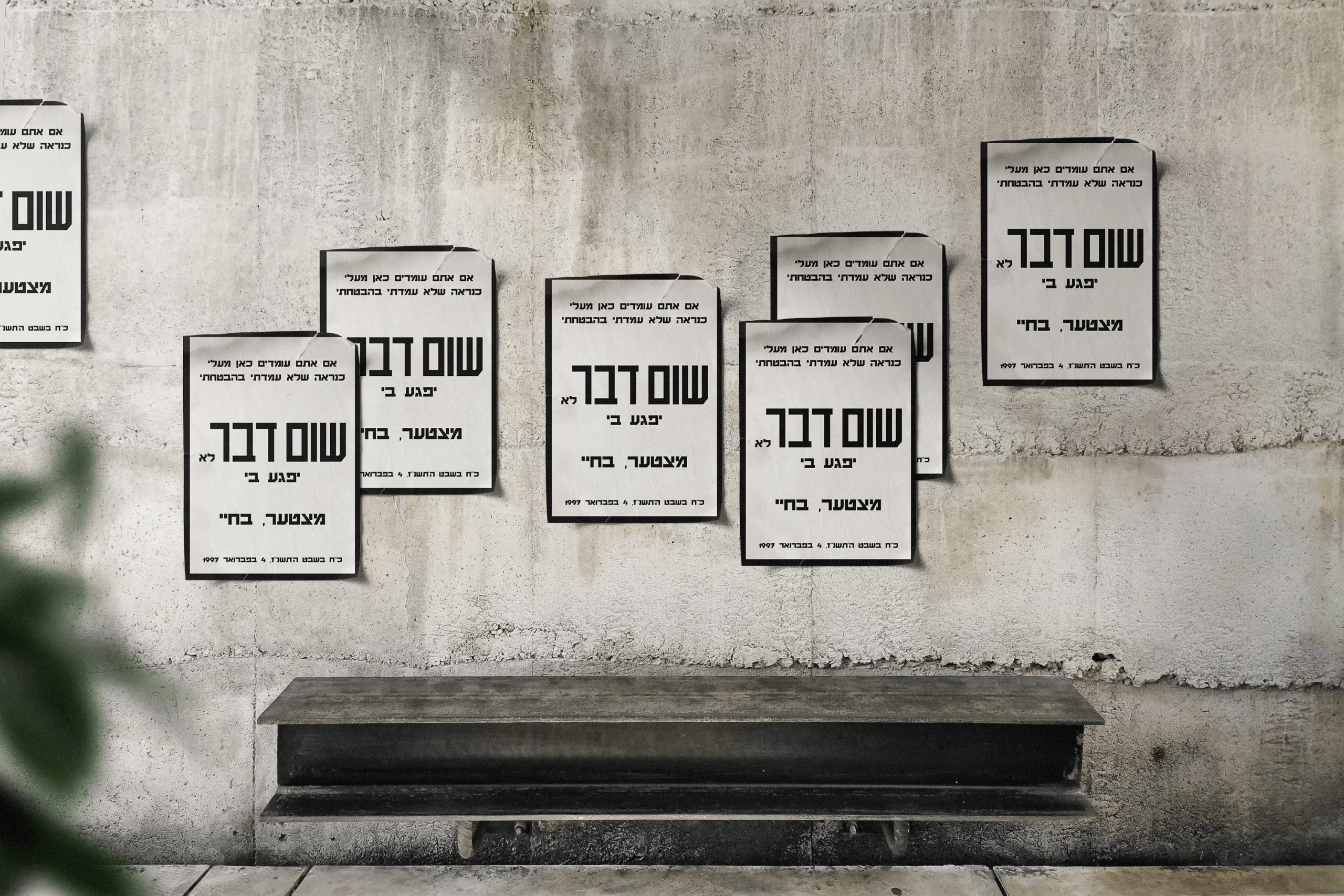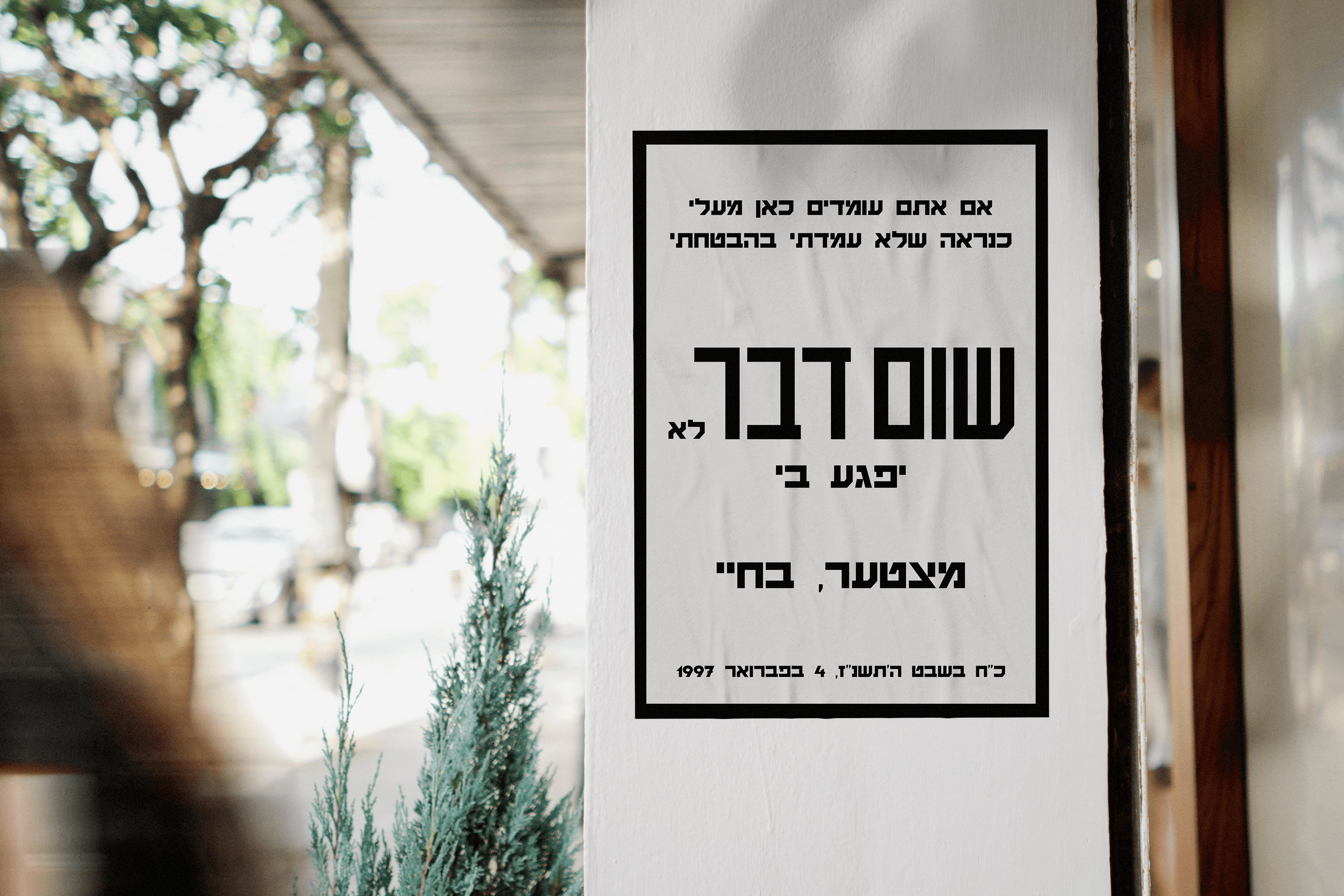 A typographic poster based on lyrics by fallen soldier Erez Shtark, killed in the 1997 Israeli helicopter disaster. His words were later set to music by the band Knesiyat Hasechel.